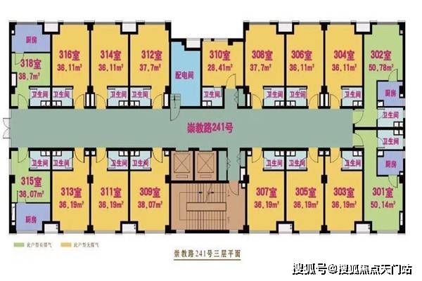 3崇教路241号,2梯17户,朝南8户,面积36、50,朝北9户面积36、50
