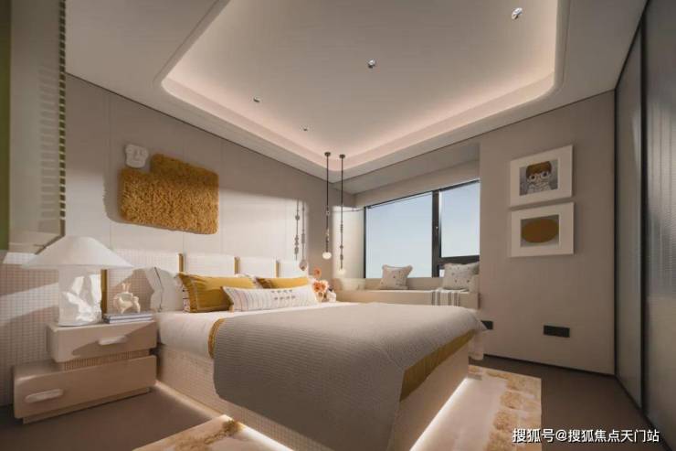 约270°视野的贯穿更是锦上添花,主卧、北向次卧、厨房的约270°转角飘窗,让每个空间里的人都能平权地拥抱城市景致。