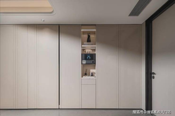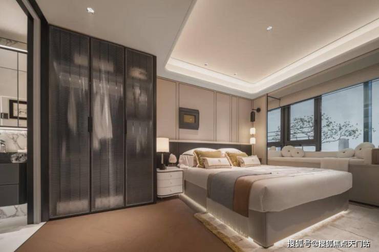 不同于市面上门是门,框是框,墙是墙,看房时“五颜六色”。外滩瑞府室内采用一体化设计语言,实现空间、色彩与材质的协调统一。比如