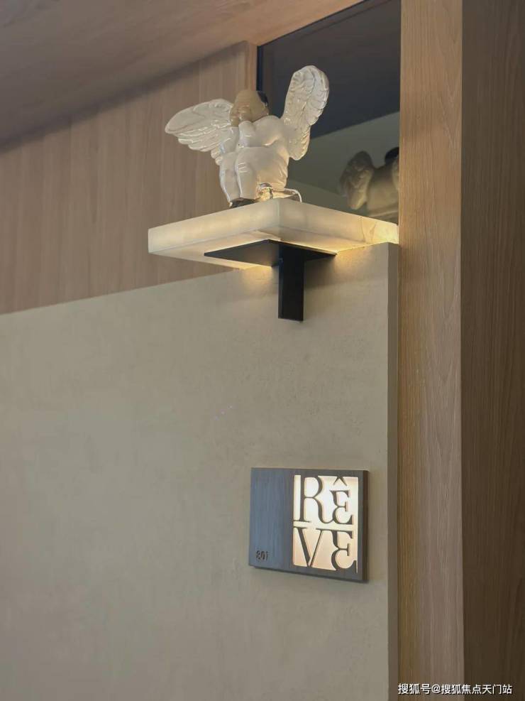 从电梯厅开始,就是酒店式定制化设计,弧形顶设计的电梯厅,门牌上设计了玉石托盘,可以放置家庭独有的摆件,注重仪式感的同时更具高定私享趣味性!