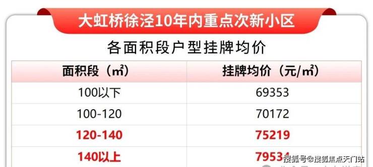 据链家网最新挂牌数据显示,目前徐泾10年内次新重点小区100㎡以下户型挂牌均价已经跌破7万/㎡。但140㎡以上的大户型却仍然有近8万/㎡的挂牌均价,溢价小户型近15%!
