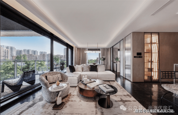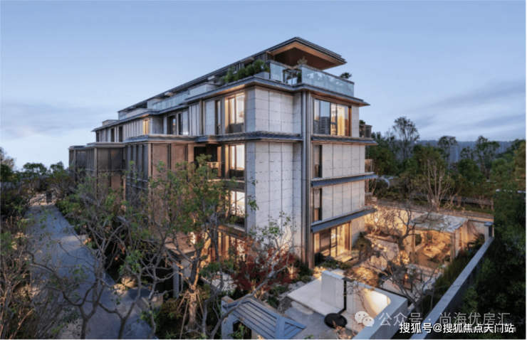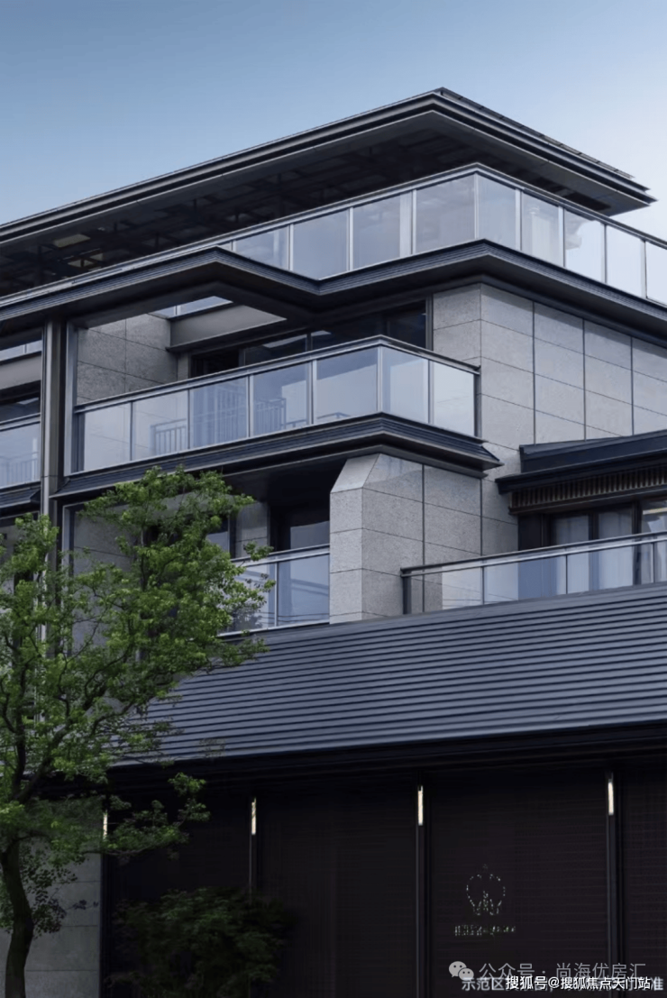 建筑立面取意“瘦金体”笔韵,鎏金铝板与天然石材辉映,搭配全景落地窗,将四时景致与流云光影纳入室内。