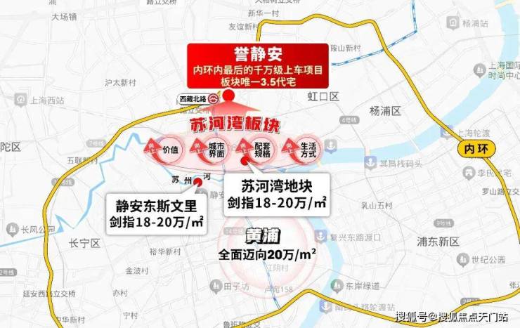 虹口内环已达14.5-16.5万/㎡,与项目直线距离仅约2公里,单价高出4-6万/㎡;