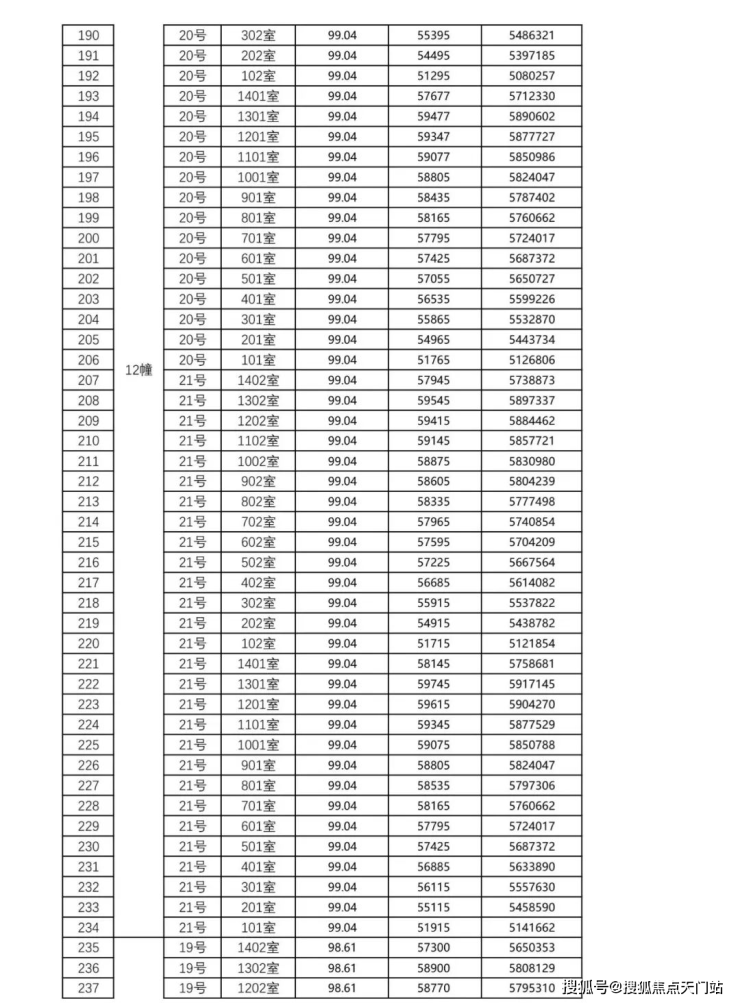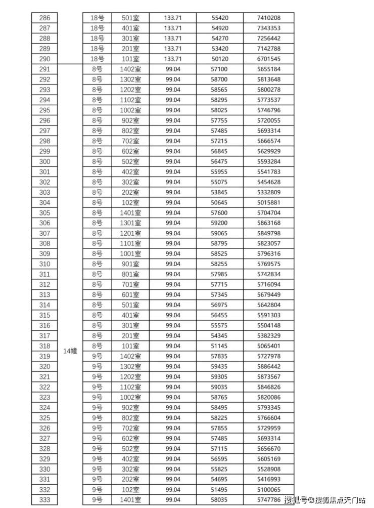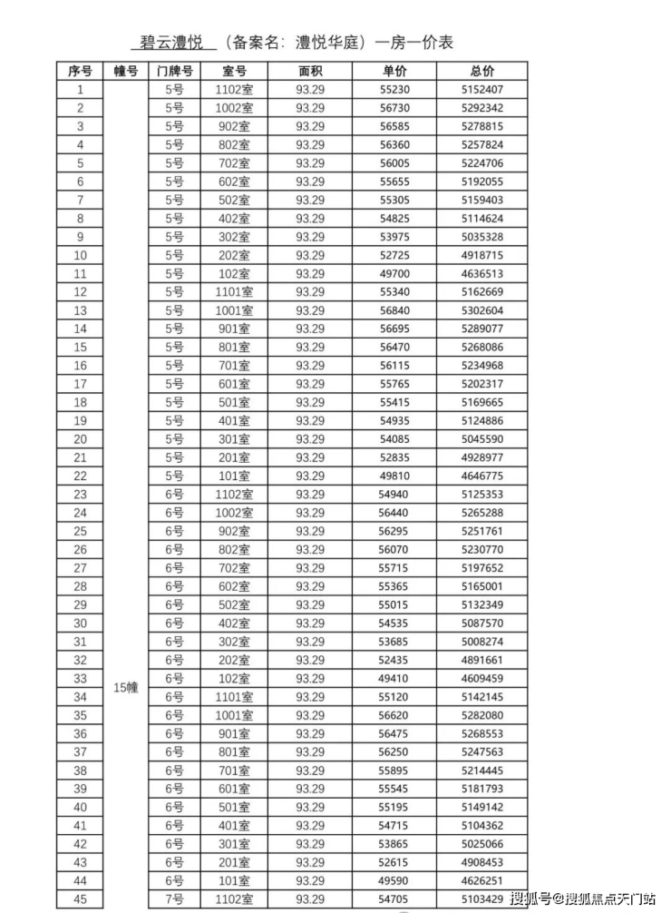 一房一价表