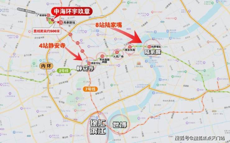 环宇玖章直线距离20号线广泉路站(在建)约400米,距7号线岚皋路站约500米,4站静安寺、5站南京西路,通勤便捷度远超同价位区域。