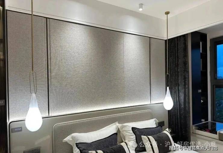 主卧床背景墙进行了软包处理,省去了业主未来二次装修的时间、精力跟成本,更好的给业主一个舒适且高颜值的家。