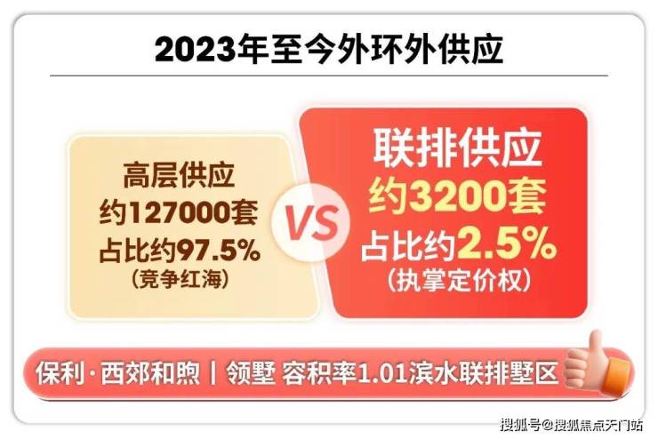 2023年以来,上海外环外高层供应占比约97.5%,联排别墅仅约3200套、占比2.5%。