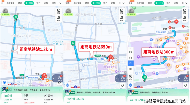 不同的距离步行到地铁站的差距有多少呢?来看百度地图的测距: