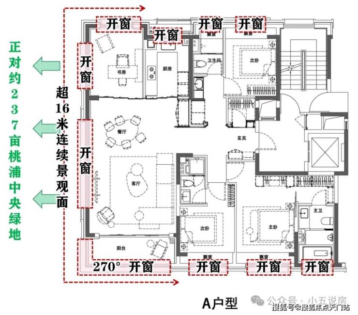 北-东-南3面景观!270°无界景观阳台!超16米连续西向景观面!西侧整块玻璃约8.2㎡!高区部分房源视野延伸近6公里!