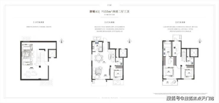 景观巧妙利用高差以中式院落空间递进关系为切入点,打造“【府】-【园】-【宅】”三重空间序列,形成“私密-半私密-半公共-公共空间”,打造三进归家动线。