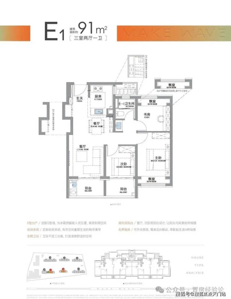 “南向双阳台+南北双飘窗”,构筑真3房户型!