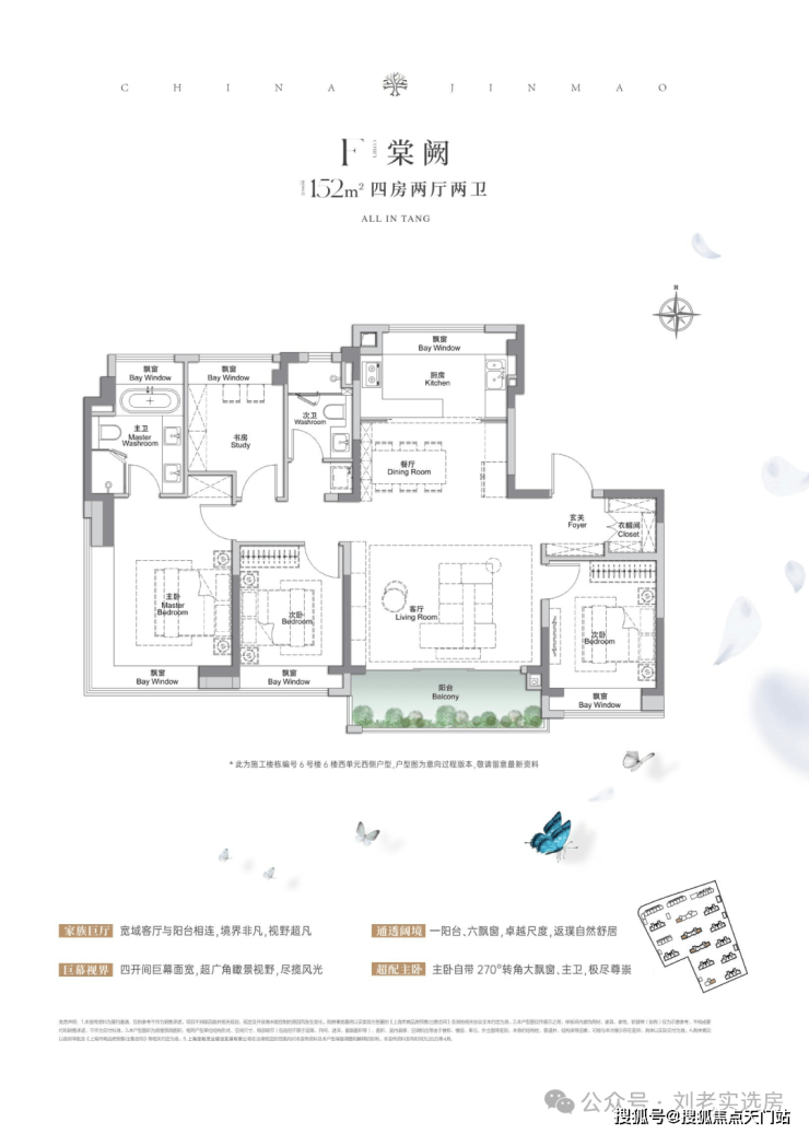 建面约137、152㎡4房2厅2卫,空间布局非常相似,都做到了四开间朝南+入户玄关+6个飘窗+主卧套房设计,所有空间的尺度一步到位。