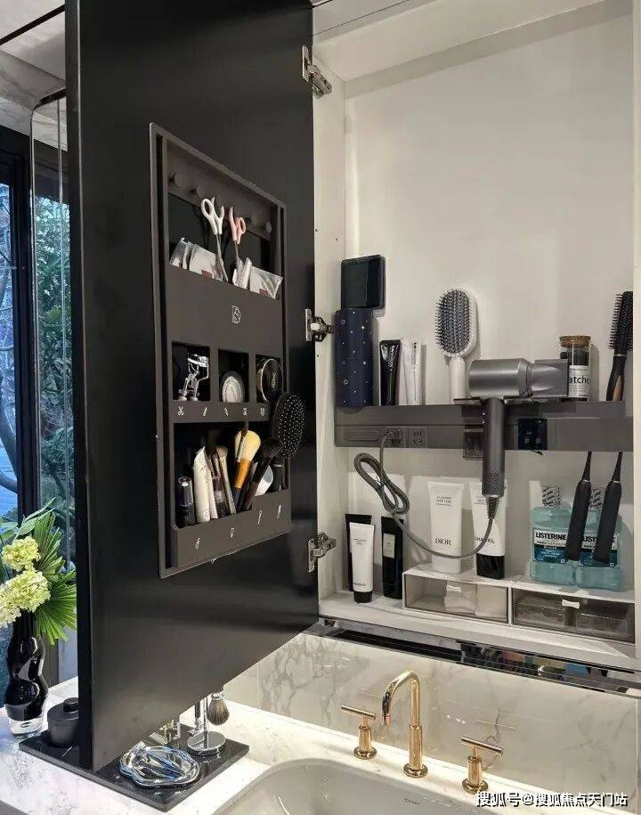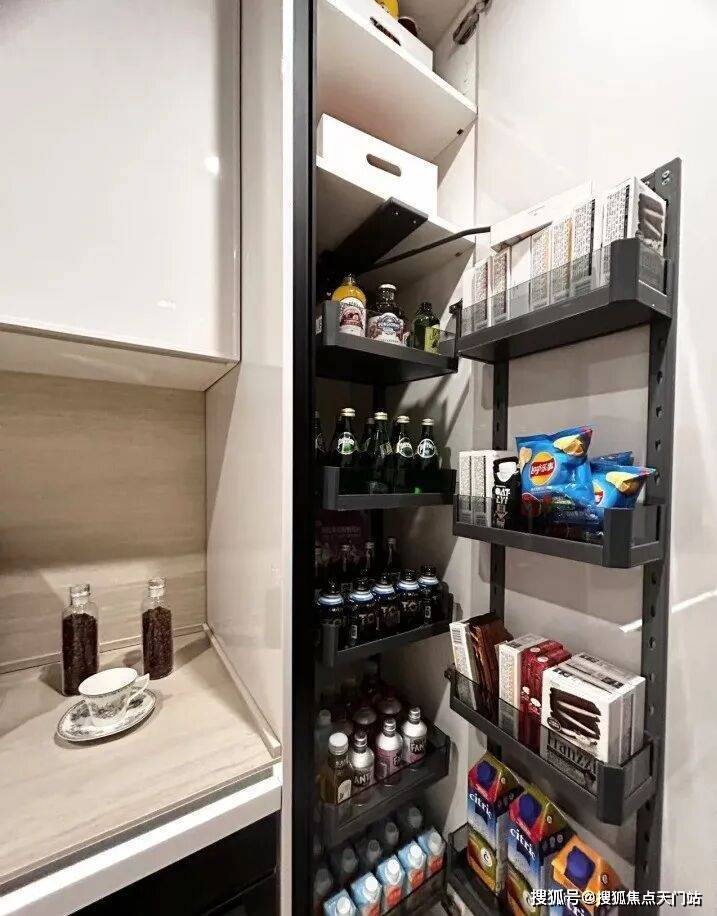 可抽拉的零食柜、厨房抽屉式碗碟拉篮、包括卫浴的收纳墙,于细节之处见真章。