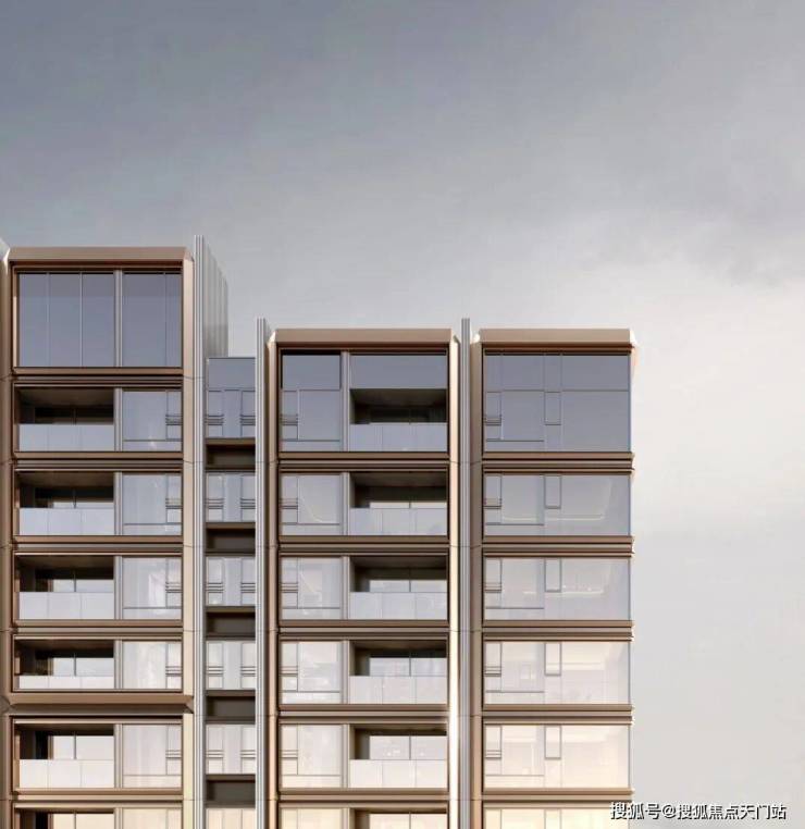 同时,南侧还运用了铜色的铝板和浅白色陶瓷板,这样立面风格,再搭配上塔冠的造型,实在太抓眼球了。