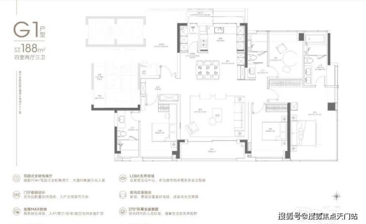 超大尺度与超强采光面,四开间朝南+主卧270°无柱转角飘窗+灵动空间设计,豪宅基因与品质感跃然于眼前,全市改善稀缺品种。