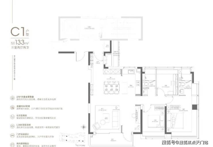 133㎡的四房产品是项目的明星户型,板块内以及整个中环难得的改善型作品。