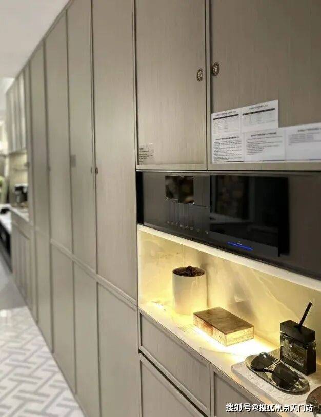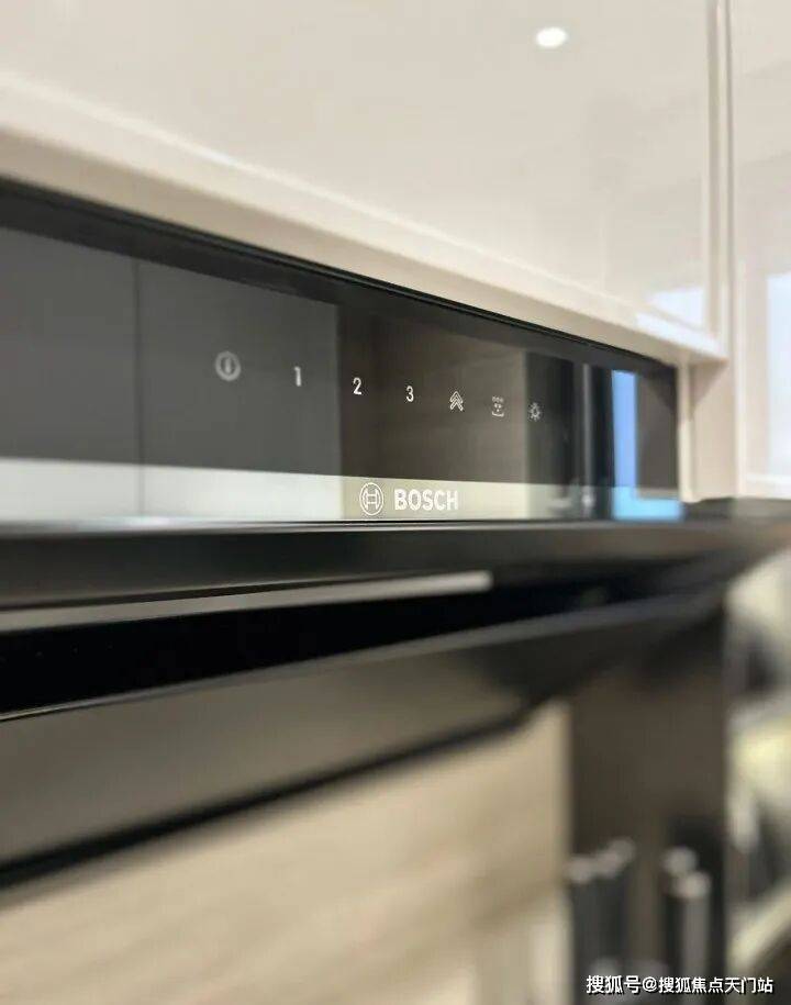 厨房,采用博世(或同等品牌)的吸油烟机、灶具、洗碗机、蒸烤一体机四件套、怡口(或同等品牌)的末端净水器、摩恩(或同等品牌)的垃圾处理器都统统配备。