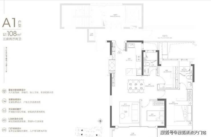 建面约108㎡的三房两厅两卫,总价约700万起,门槛友好,年轻家庭置业中环的不二选择。