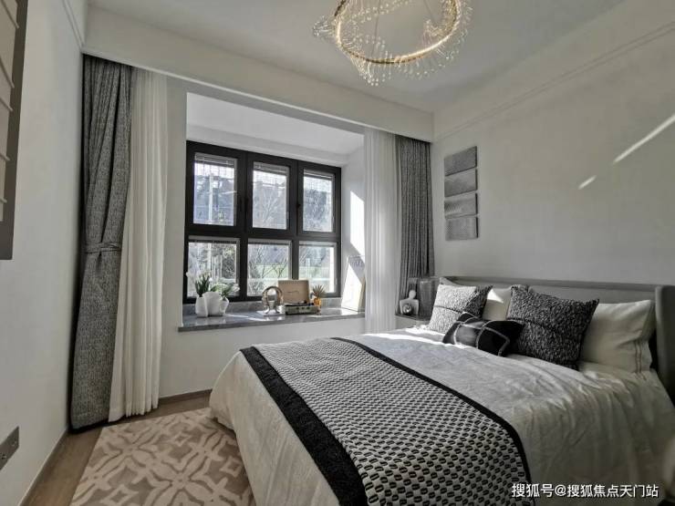 U型厨房, 操作台与厨房动线符合人体工学设计,转身之间,洗、切、烹、炒流畅便捷,与餐客厅形成一条笔直的居家生活动线; 三间卧室全附带飘窗 ,拓宽了景观视野的同时,增加了实际空间使用率; 南向主卧做了带独立卫生间的套房设计 ,仪式感和私密性更强。