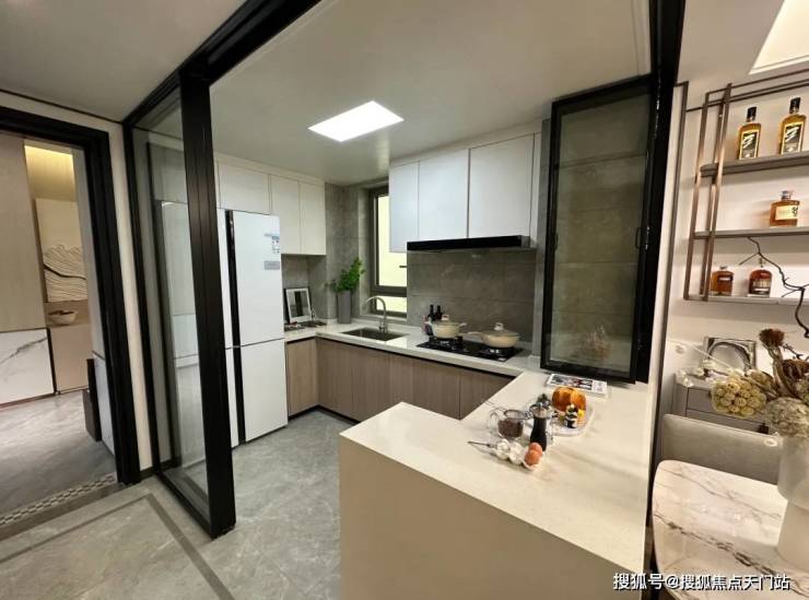 具体细节方面,项目目前只有一个建面约100㎡三房的样板间,带软装后面宽约3.3米,吊顶后层高约2.73米。