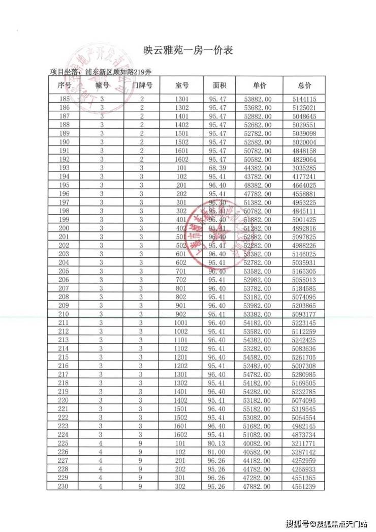 「一房一价表」