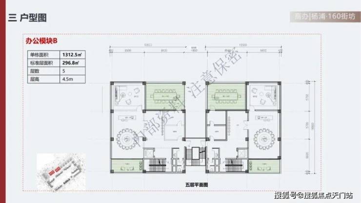 地上5层+地下1层,地上层高4.5米,地下层高5.25米。