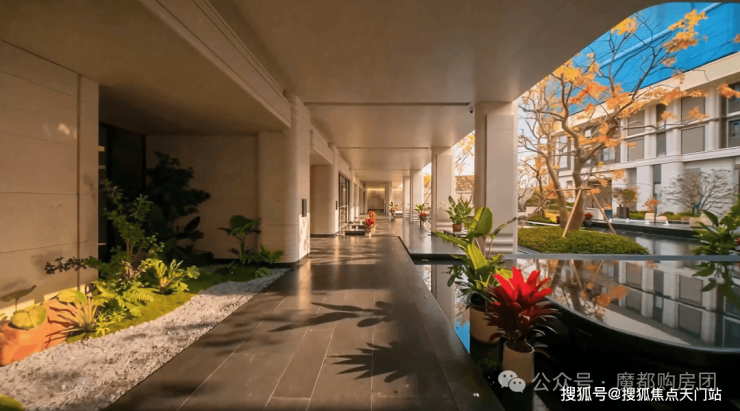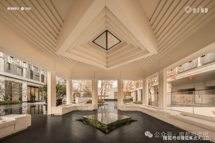 当建筑之上的天光从水院折射入内,非遗陶板与玻璃构筑出的悬浮视觉奇迹,便凝固为一道精神地标。步入其中,于水院之畔小憩,不仅是业主的惬意日常,更是“自然与建筑共生”的精神对话。
