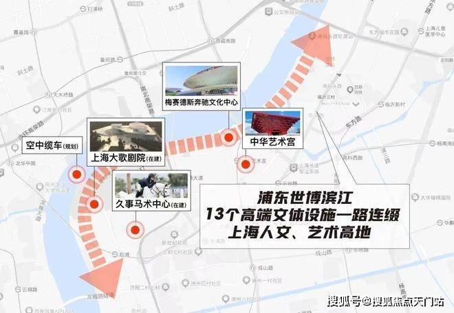 艺术休闲氛围,全上海封顶: 向北约800米是占地200万㎡的世博文化公园,国内最高人工山“双子山”、国际马术中心;周边是全球大师打造的13座国际级艺术展馆,形成比肩伦敦西区、纽约百老汇的世界级文化艺术中心。