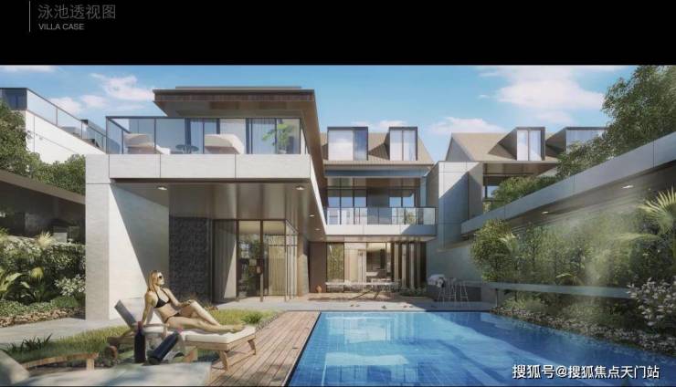 泳池里两旁的庭院,可以与亲朋好友相聚。
