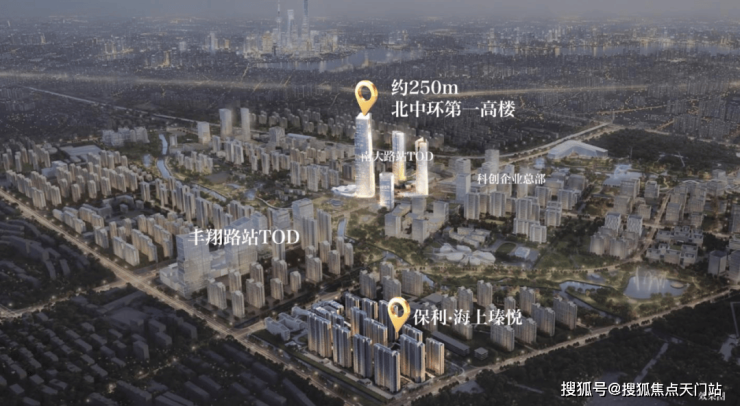 同时,科创之门、双子塔与规划中的约250米摩天大楼,共同构成了区域的标志性建筑群,不仅提升了区域的城市形象,更成为区域能级跃升的象征。