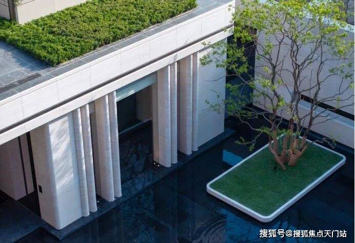这种一般只存在于公园里的景观设计,这一次,招商将其挪入了私家园林。 配合门外梧桐掩映,老静安的调性,跃然纸上。