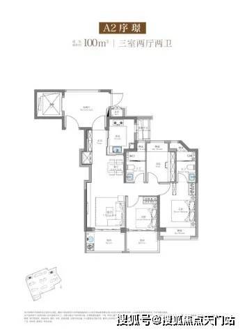 2011年颁布的《中华人民共和国住宅设计规范》中提到:双人卧室不应小于9㎡;招商序每个卧室在阳台“扩容剂”的助力下全部达标,A1户型在百平空间做到了3个双人卧室。