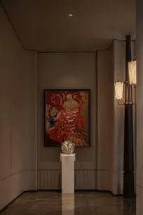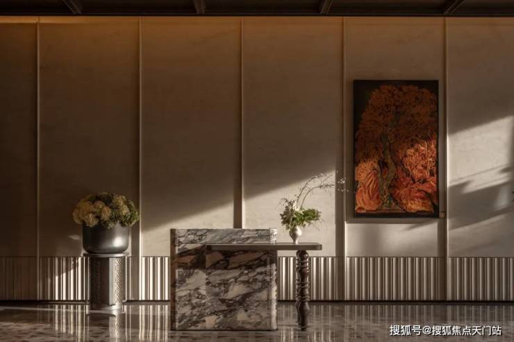 从首席制的设计操刀,六重归家的尊崇、堪称“石材博物馆”的公区立面,到四层悬浮式下沉庭院,手工定制的艺术品,甚至连社区的灯光与会所花艺都由名师执掌。