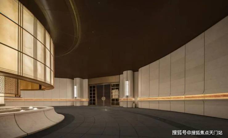 另外,项目首层通过硬朗直线呼应柔和曲线勾勒,辅以温润石材与古铜色金属线条融合,打造东西方美学共融的艺术藏品。