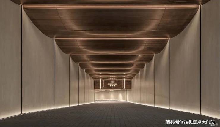 通过迎宾楼,便来到了约20米长的精神游廊,该精神游廊同源招商玺“树宅相守”的设计手法,更致敬建筑诗人斯卡帕“以自然光感去创造时间驻留感”的理念,通过对光线、材质与空间的创新打造,营造充满宁静的归家场域。