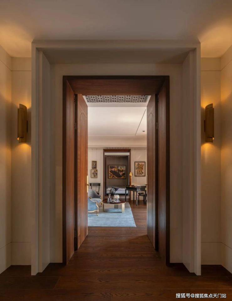 入户空间由一个简约的门厅和楼梯厅组成,门厅配有控制台和嵌入式衣柜。以多功能圆桌为中心的楼梯厅连接着楼梯、电梯、客用卫生间和客厅。空间采用白色洞石搭配特制染色的胡桃木,其浅色调与洞石和谐呼应,同时保留了胡桃木独特的纹理特征。天潼198售楼处预约热线:400-118-3159☎️☎✅✅✅《售楼处已认证》