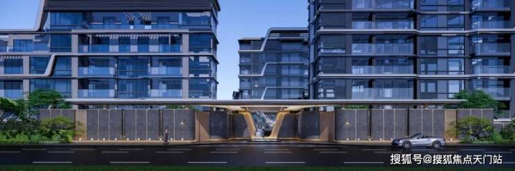 而在翎翠滨江,光门头就打造了一个 约100米的超级归家界面 ,用 蓝翡翠奢石 搭配 艺术雕塑 ,为业主营造更具仪式感和尊贵感的归家体验。
