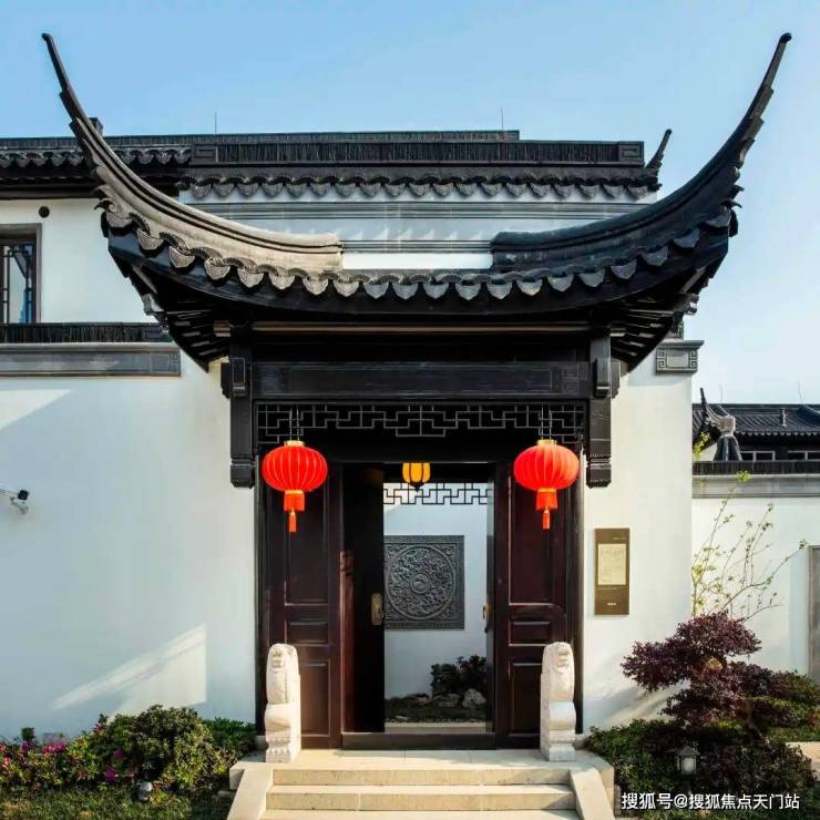 门前一对抱鼓石,推开铜环双开门就是家。滴水檐瓦,全依古法,还原每一个繁复的构件。