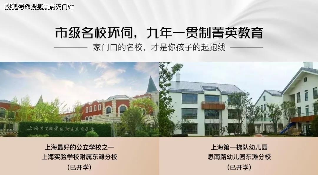 上海实验学校附属东滩学校、上海市东滩思南路幼儿园、上海新纪元双语学校等全龄化教育资源;和项目一路之隔