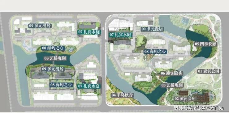 罕见双自然水系!一横一纵2条水系将项目地块一分为三,形成三座天然“岛屿社区”,这在市面上非常少见。