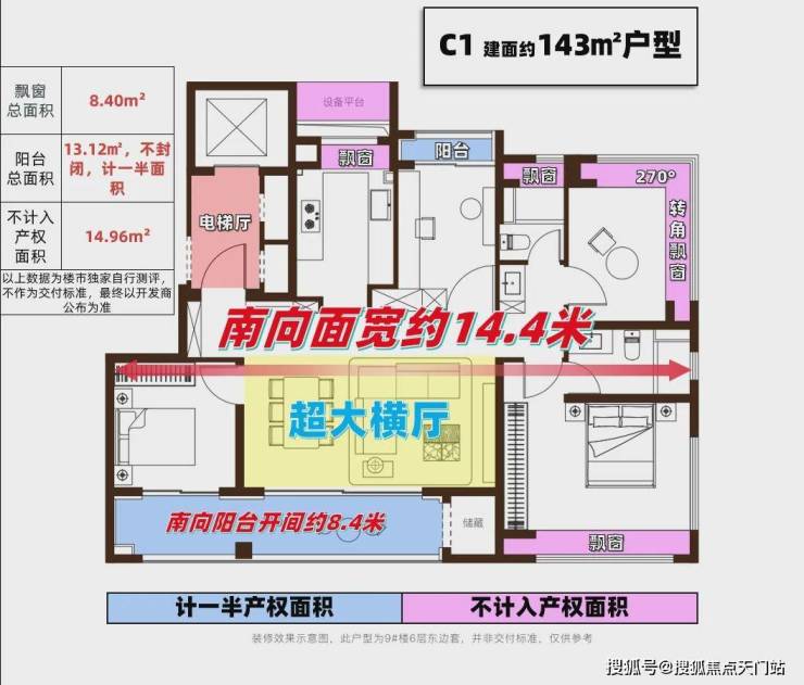 给大家实测一波,建面约119㎡的套内空间实际可利用率,达到了87.7%(含飘窗、阳台,以上数据为楼市独家自行测评,不作为交付标准,最终以开发商公布为准),足以媲美市面上建面约140㎡的户型,不计入产权的面积超过11㎡,就按9万/㎡预期算,买这套房足足可以省下近百万!