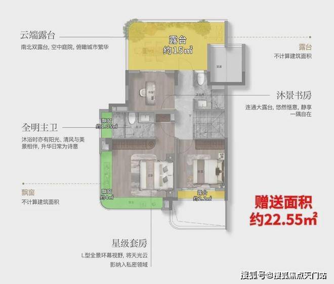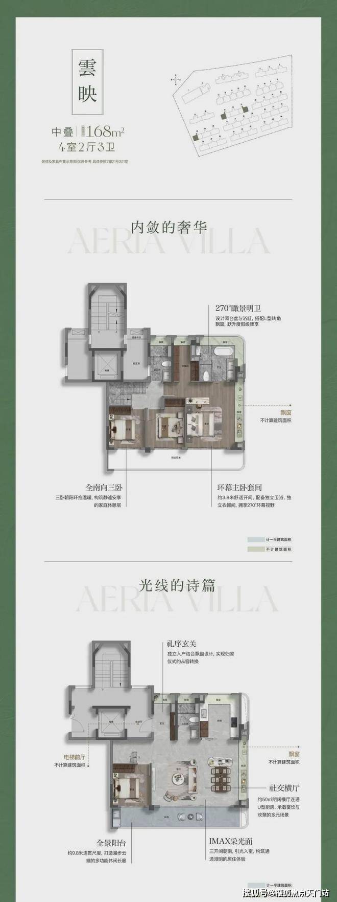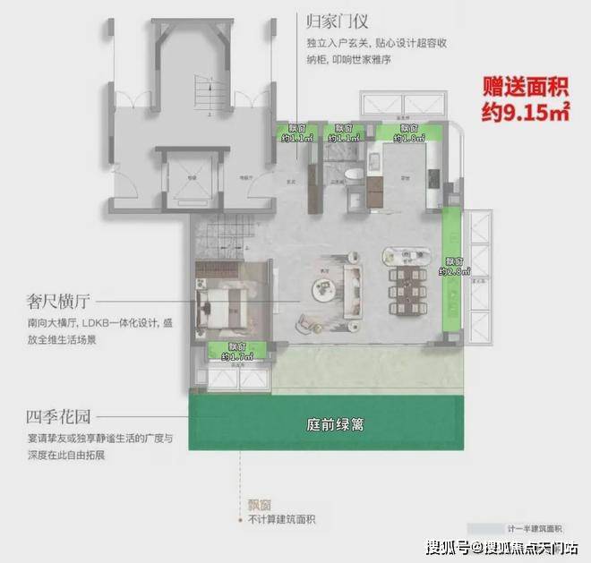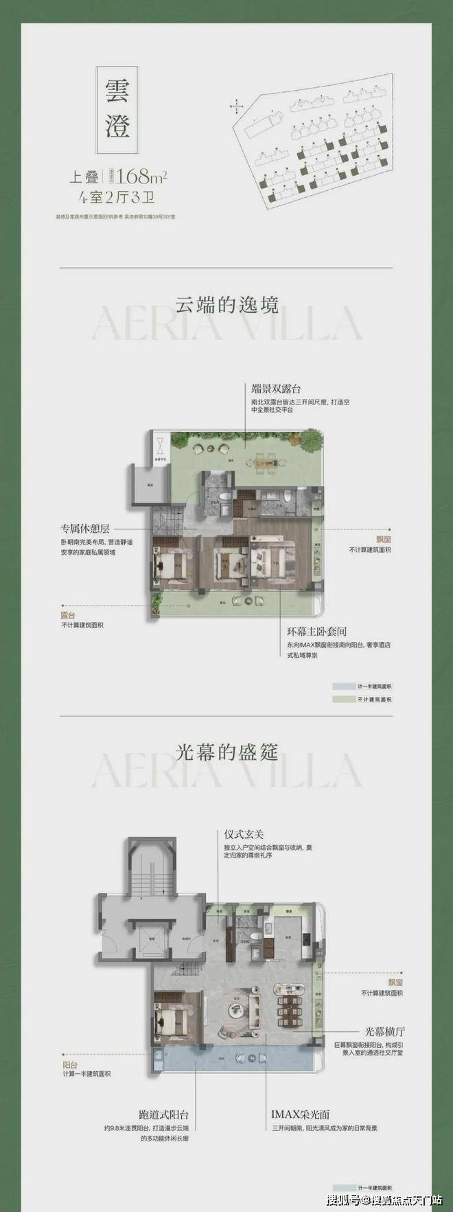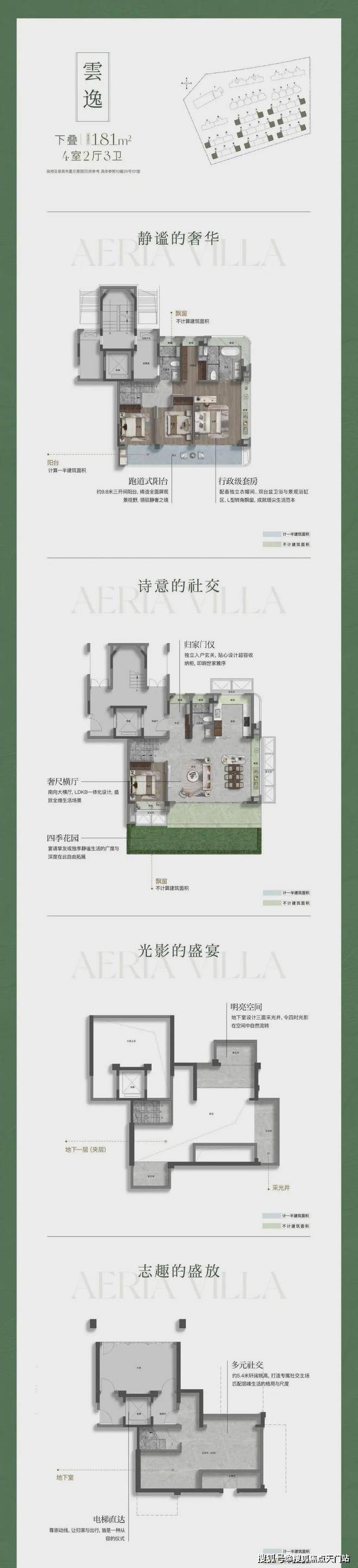 高附赠空间,实得率惊人 :延续联发一贯的产品力优势,本次叠墅产品通过挑空、露台、飘窗、地下室等多维空间设计,实现超高附赠率。以建面约182㎡下叠为例,实际可使用面积可达约292㎡,实得率高达约161%;建面约168㎡三面宽上叠,实得率亦超139%。每一寸空间皆物超所值。