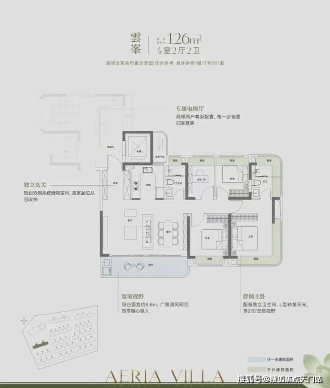 本次加推的房源,全部为三面宽设计的上叠与下叠产品,面宽尺度达到约9.8米,不仅保证了圈层的纯粹性,还带来了更多的南向采光面、更通透的居住体验,以及更极致的景观视野。