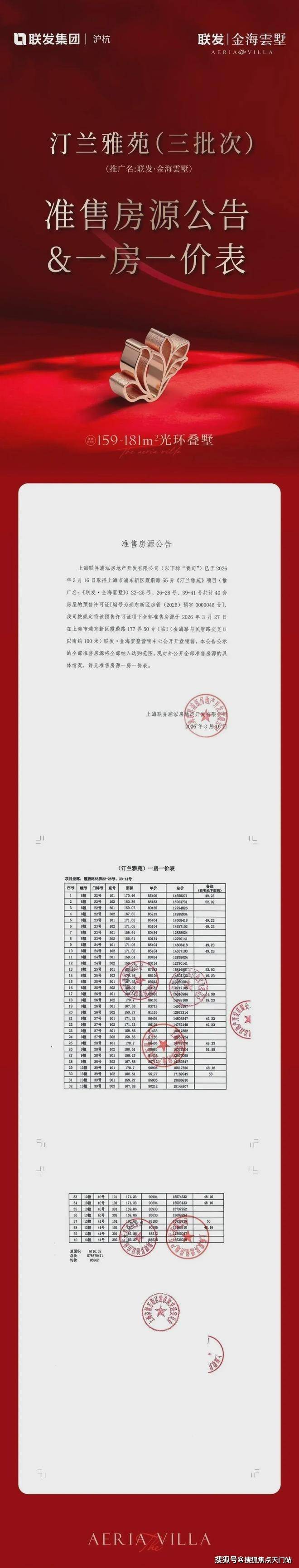 上海市浦东新区联发金海云墅 官方网站公示信息