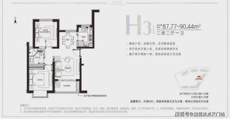 建面约78-91.22平米的小户型,两房两厅一卫的格局,非常适合年轻刚需家庭上车。