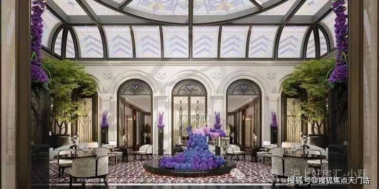 环抱式落客区灵感来自意大利许愿池,细看池底却铺陈龙鳞祥纹,含蓄传递东方祥瑞。