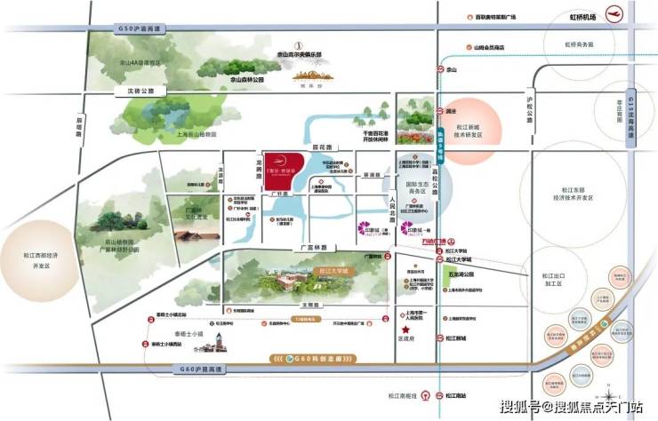 项目西侧约800米是4A景区广富林文化遗址、广富林郊野公园,项目北侧约2公里处辰山植物园、佘山旅游度假区、欢乐谷等等,是休闲娱乐的好去处。