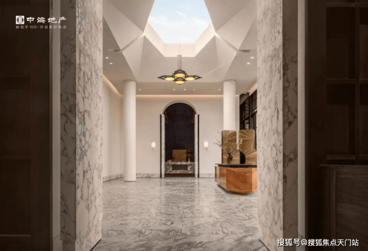进入大堂,抬眼可见的是由一块完整的巨型玻璃组成的天窗,约7.9米高的钻石切面整玻吊顶+约500余块大花白奢石铺就的地面,让人每一次走进来都能感受到自然光线的包围,仪式感十足!