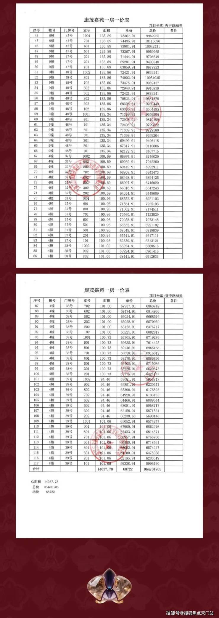 最新一房一价表曝光: