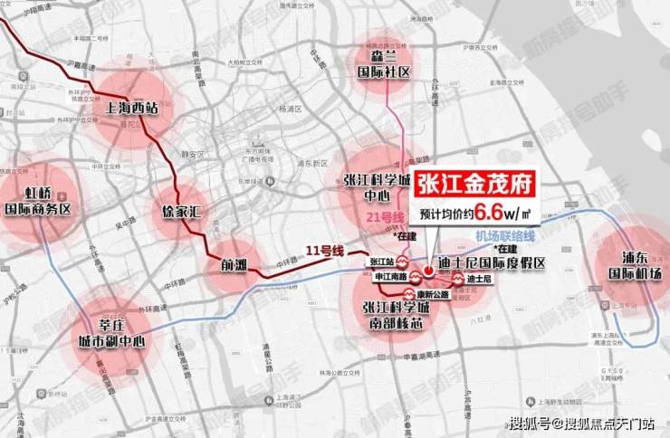 未来 机场联络线 快速通达 浦东机场、上海东站、莘庄以及虹桥商务区 ,轨交 21号线 南北向通达 张江科学城核芯、森兰国际社区 等。